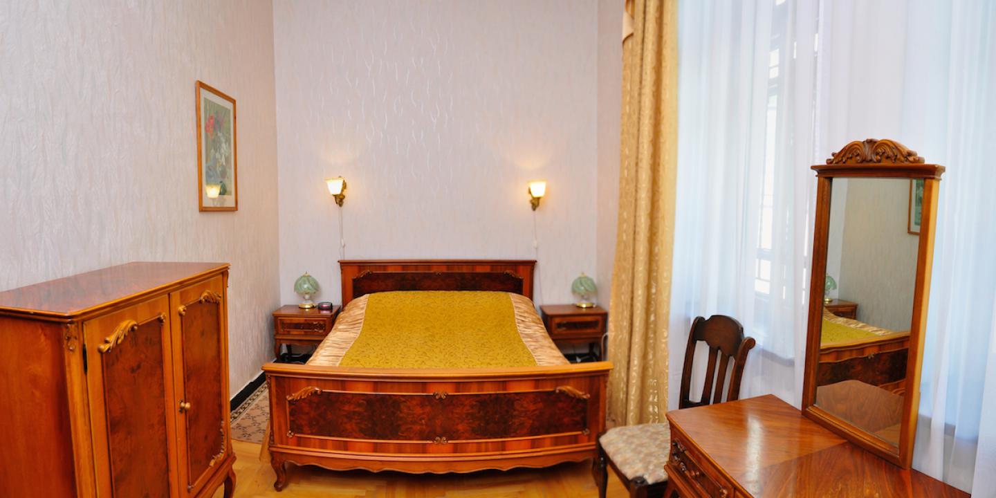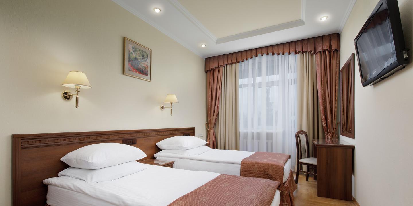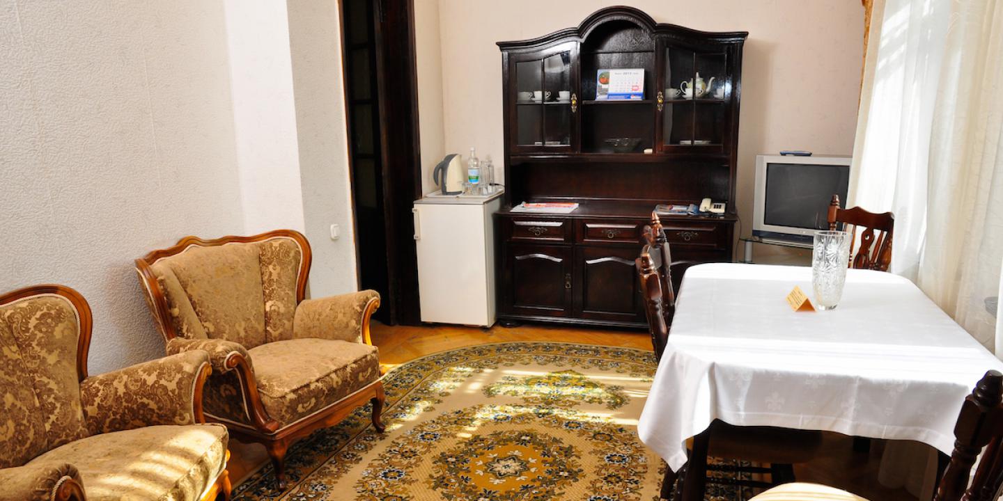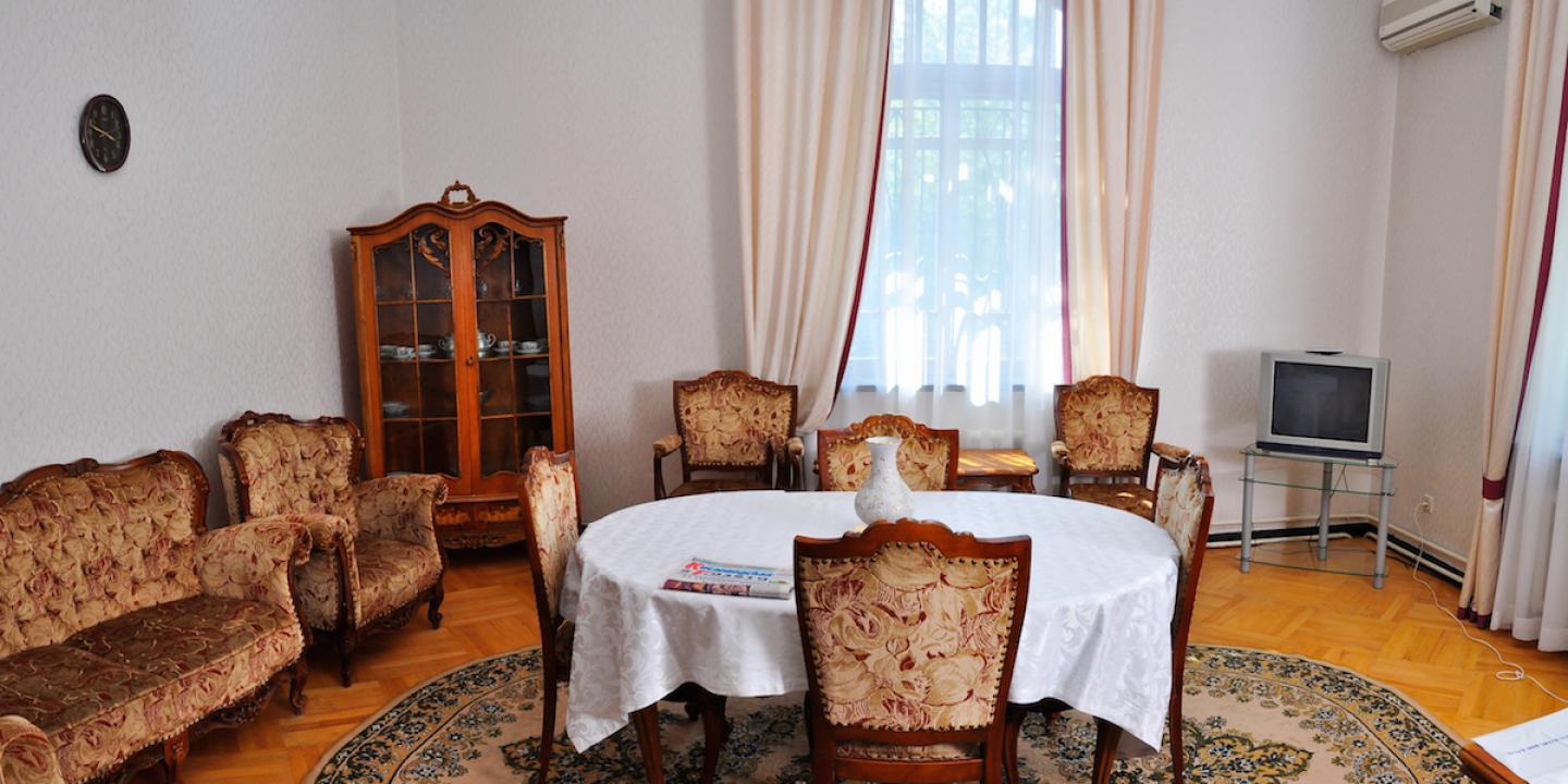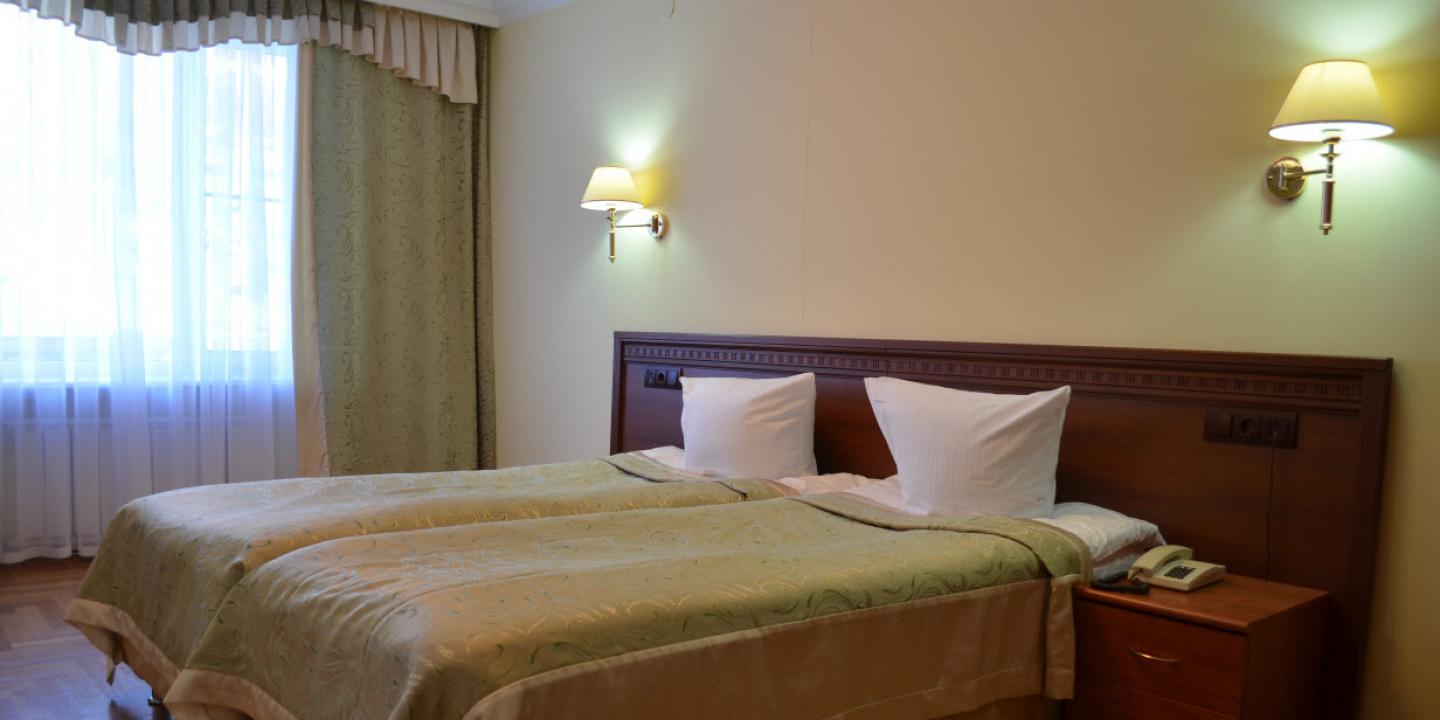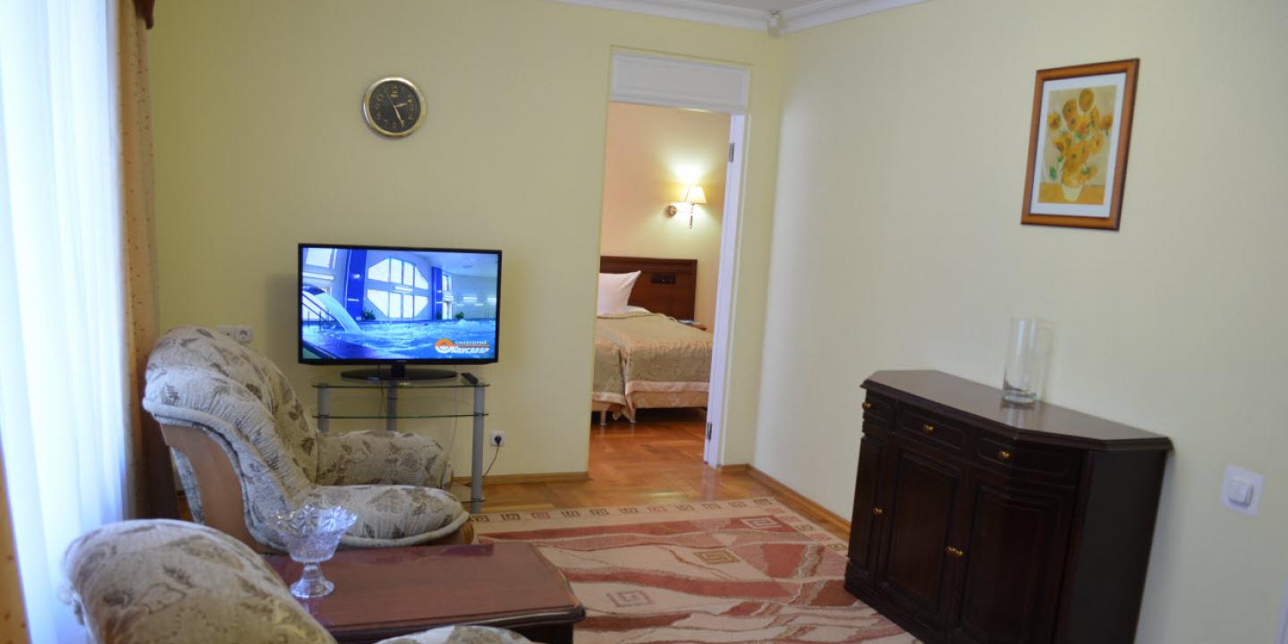 Санаторий разместился на охраняемой озелененной территории и включает главный 7-ми этажный корпус, оснащенный лифтом, еще один жилой корпус в 5 этажей и один двухэтажный коттедж с номерами. Также на территории санатория находится бювет с минеральным источником. Жилой фонд, рассчитанный на заселение 240 человек, предлагает отдыхающим номера разной категории комфорта. В каждом номере независимо от степени комфорт имеется санузел, телевизор и необходимая техника. Номера улучшенной категории оборудованы кондиционером и качественным мебельным гарнитуром.