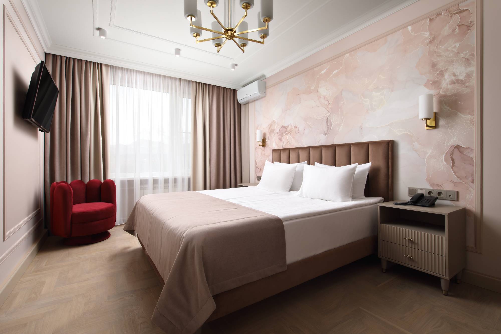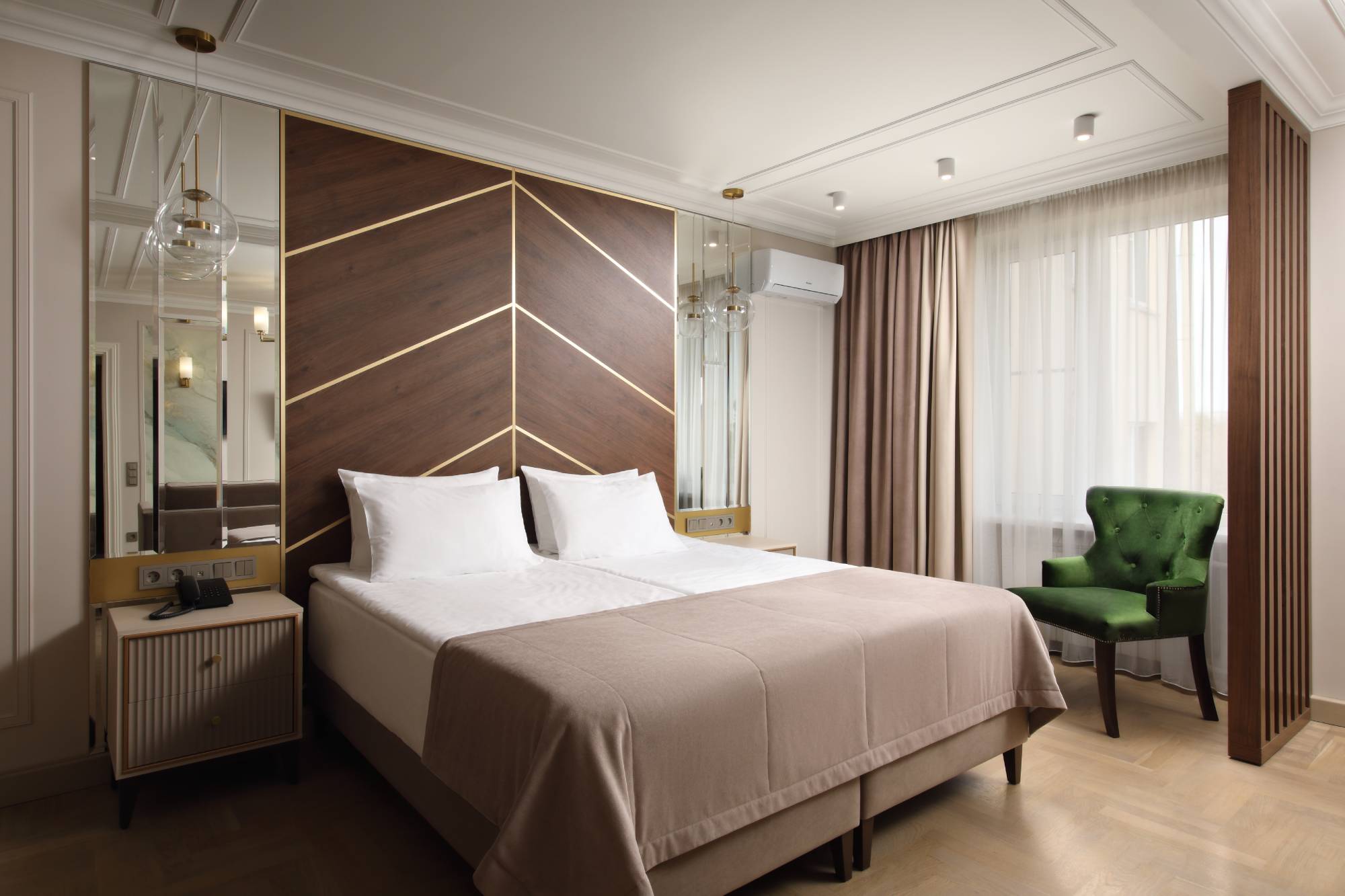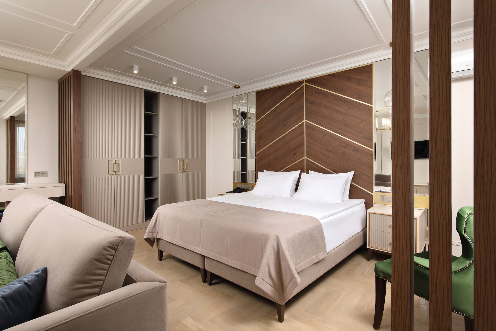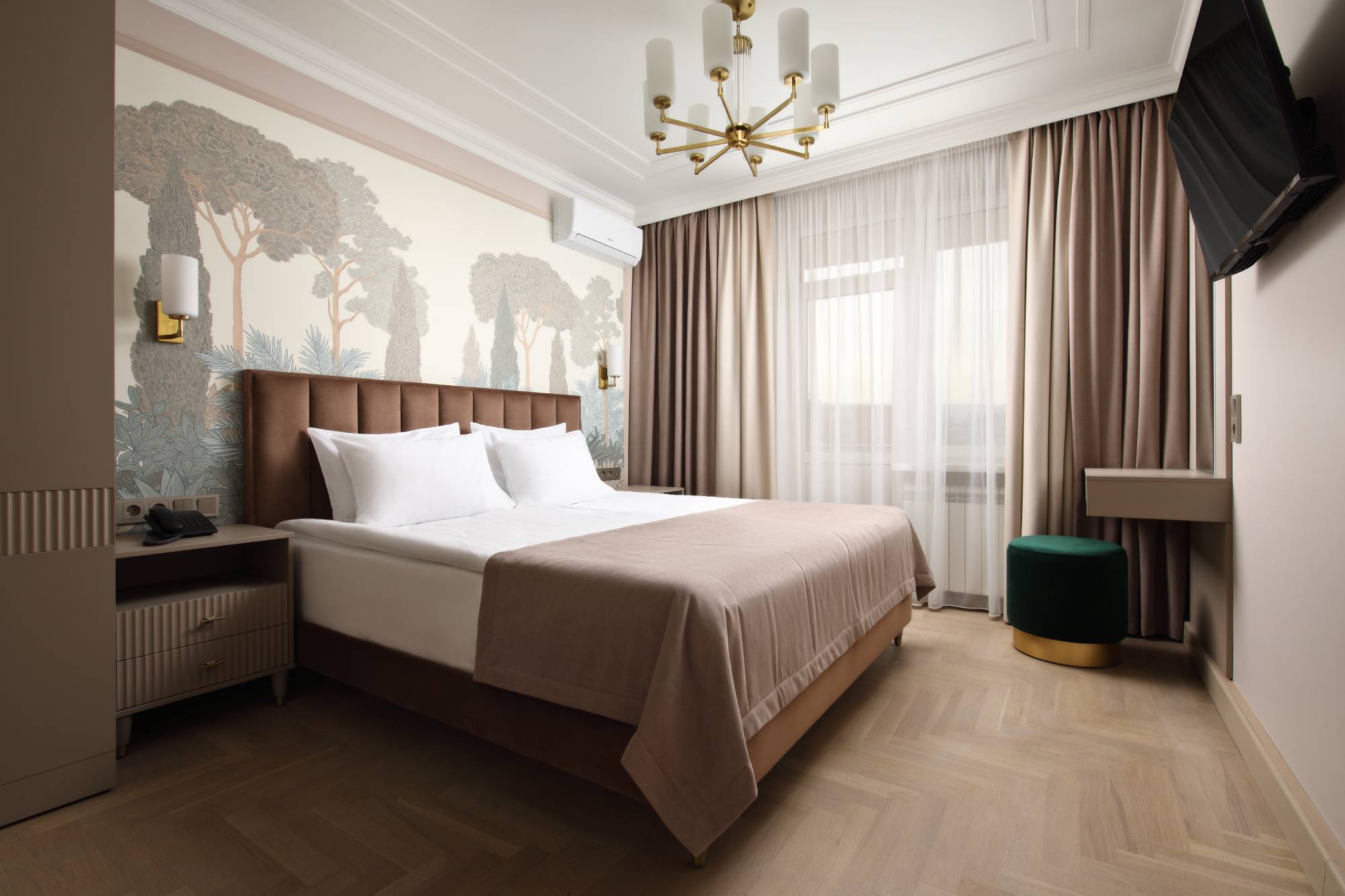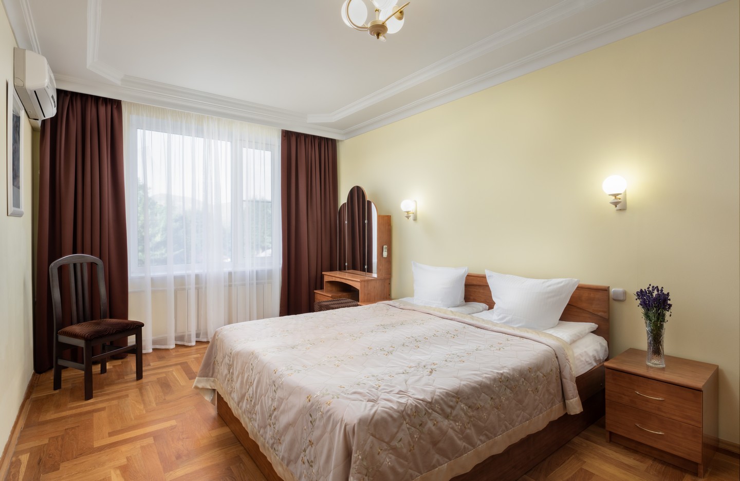 Санаторий разместился на охраняемой озелененной территории и включает главный 7-ми этажный корпус, оснащенный лифтом, еще один жилой корпус в 5 этажей и один двухэтажный коттедж с номерами. Также на территории санатория находится бювет с минеральным источником. Жилой фонд, рассчитанный на заселение 240 человек, предлагает отдыхающим номера разной категории комфорта. В каждом номере независимо от степени комфорт имеется санузел, телевизор и необходимая техника. Номера улучшенной категории оборудованы кондиционером и качественным мебельным гарнитуром.