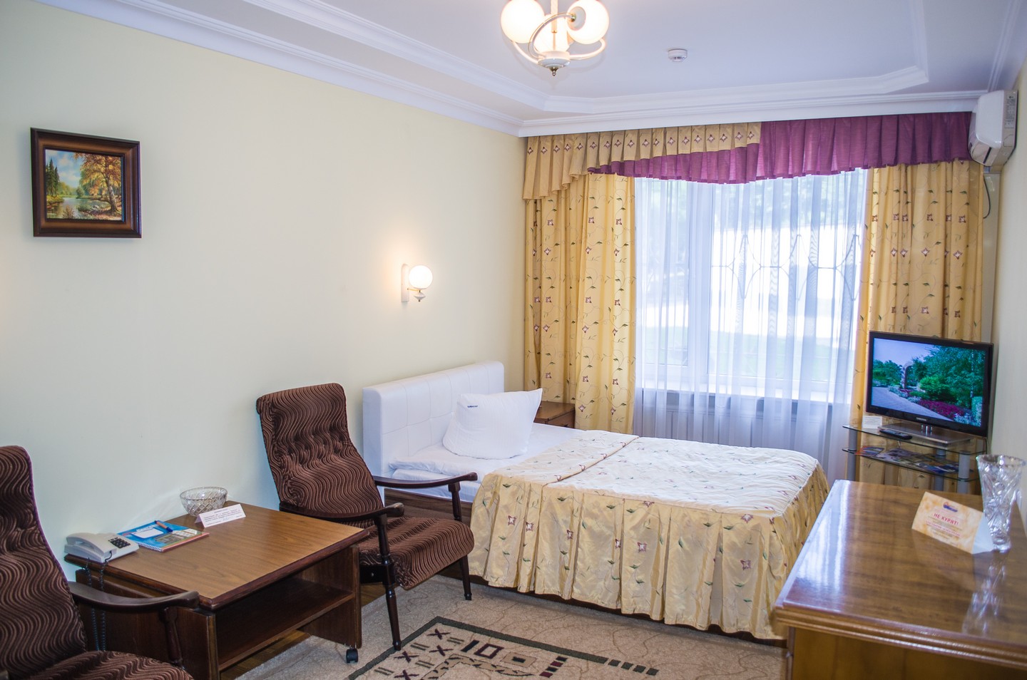 Санатории профилируется на профилактике и лечении заболеваний органов дыхания, сердечно-сосудистой и нервной систем, опорно-двигательный аппарат, заболевания пищеварения, гинекология, урология. Современная лечебная база включает в себя собственную биохимическую лабораторию, УЗИ-диагностику, отделения функциональной диагностики и эндоскопических исследований. Отдыхающим санаторий предлагает пройти курс бальнеотерапии с лечебными ваннами и душами Шарко и Виши, процедуры грязелечения, ингаляции минеральной водой и лекарственными травами и многое другое.