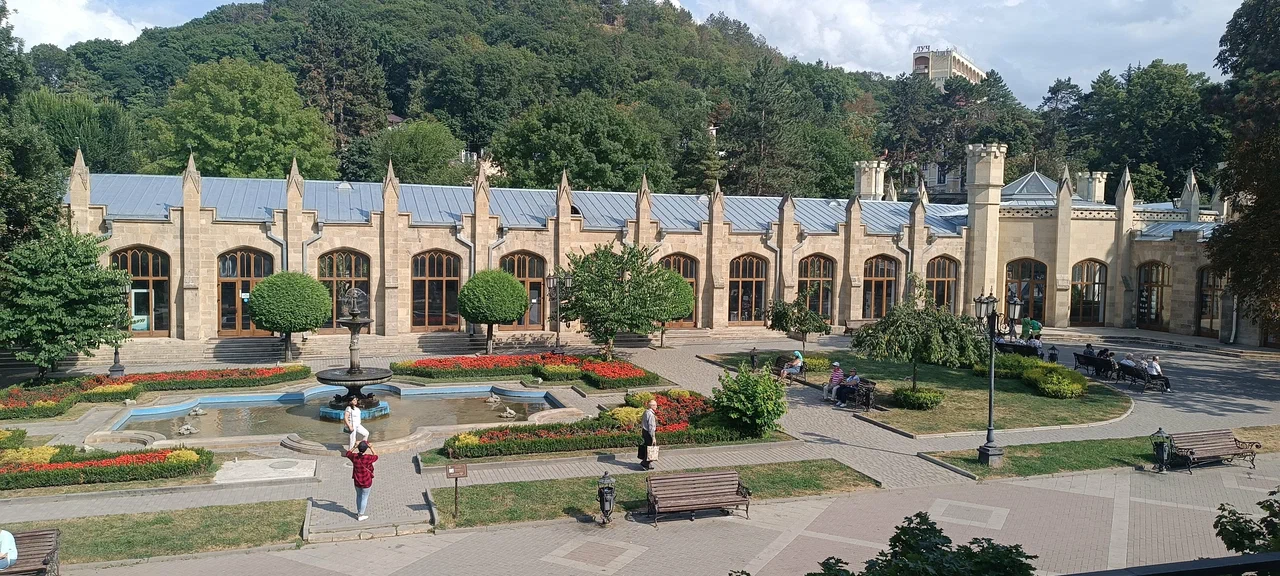 В 100 м от корпуса № 1 находятся Курортный парк с терренкурами, железнодорожный вокзал и Главная Нарзанная галерея.