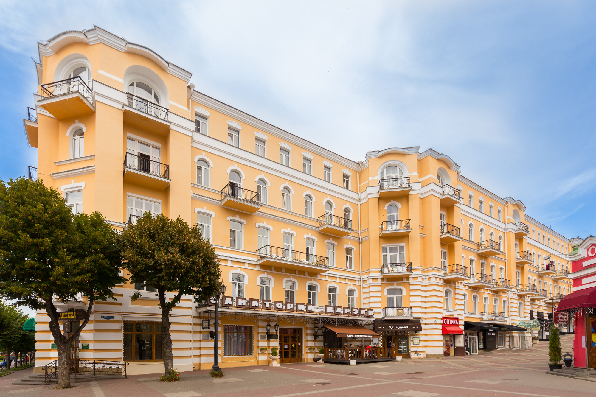 Корпус № 4 санатория располагается напротив Нарзанной галереи. Отдыхающие пользуются инфраструктурой корпуса № 1 (зал питания, лечебно-диагностическая база), который находится в 3 минутах ходьбы.Сейчас отель переоборудован в современный лечебно-диагностический комплекс, оснащенный высококлассным медицинским оборудованием. Вместе с классической архитектурой, предметами старины и особой атмосферой, санаторий создает неповторимую обстановку для отдыха и оздоровления всего организма.