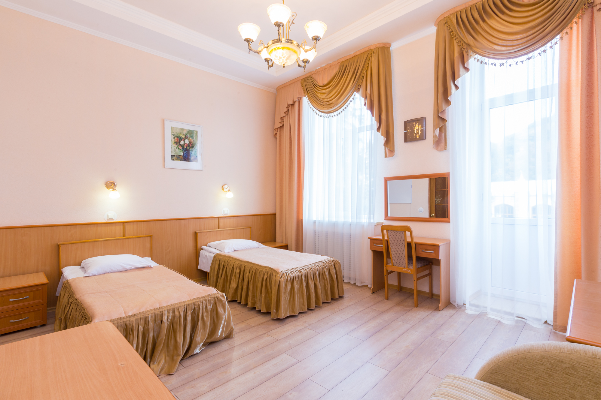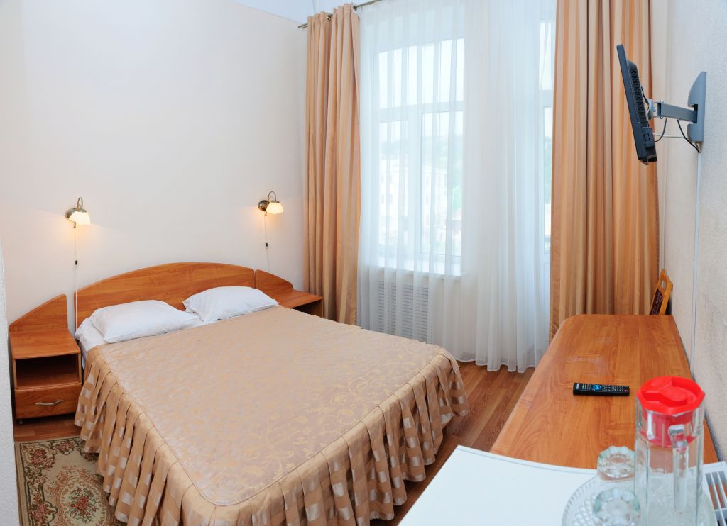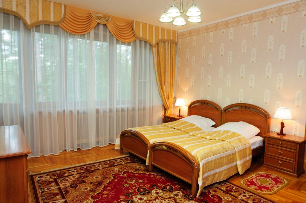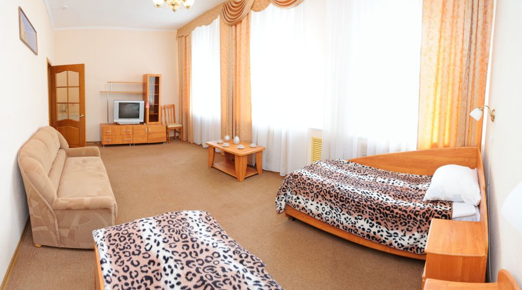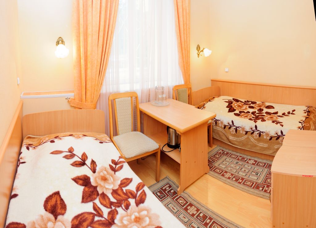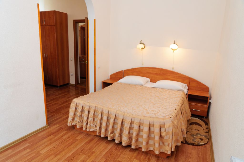 В санатории можно проживать самостоятельно или с детьми от 4 лет. Он состоит из двух двухзвездочных корпусов и трехзвездочного VIP-пансионата, именуемого «Дачей космонавтов». Вместительность главного корпуса составляет 210 человек, а дополнительного – 58. Есть двух-, одноместные стандарты, номера класса «Люкс», в которых удобные спальные места, телевизоры и холодильники. «Дача Космонавтов» располагается непосредственно в курортном парке и состоит из 6 номеров класса «Люкс», а также отдельной столовой, нарзанных ванн.