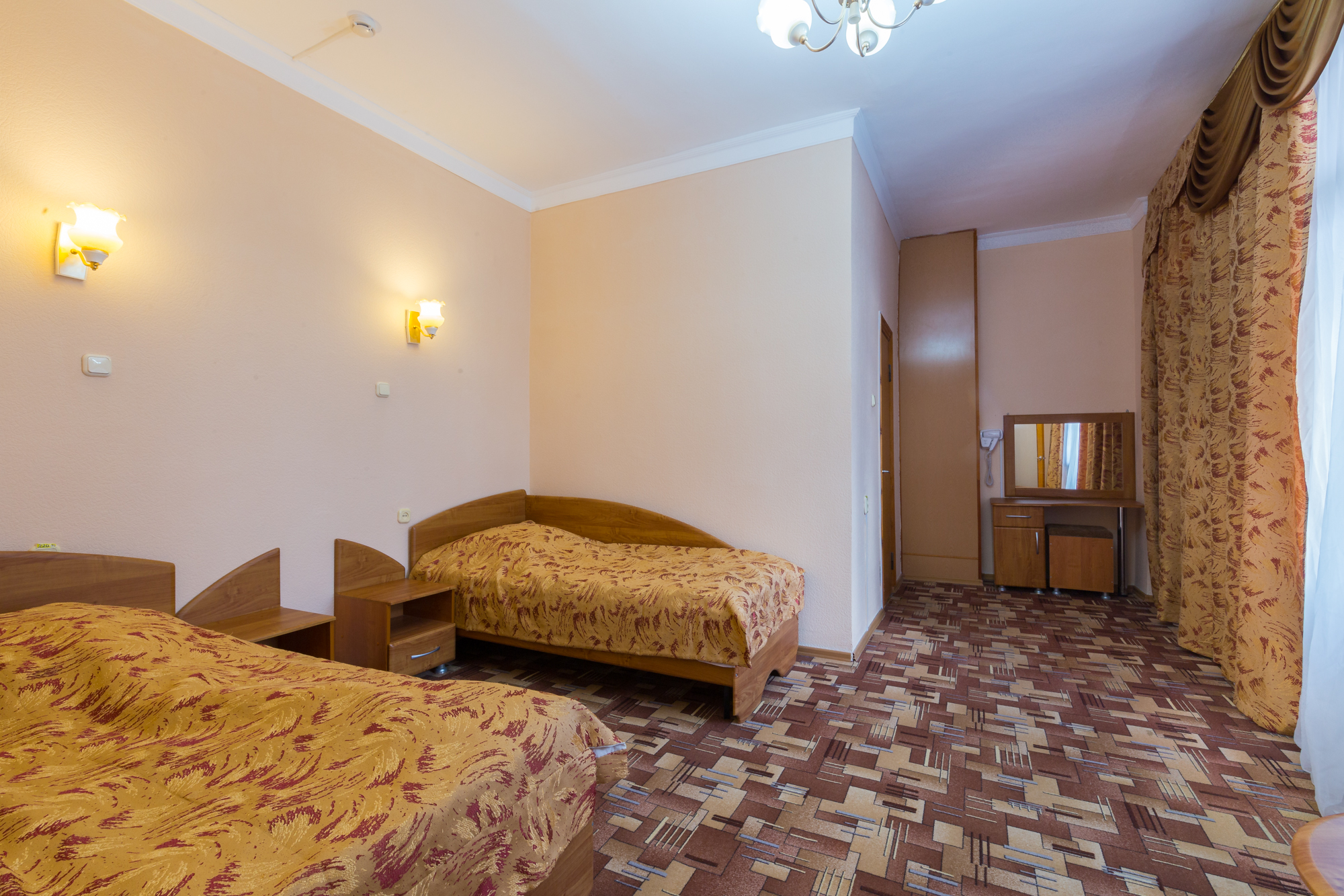 Тем гостям, которые предпочитают спокойный отдых вдали от городской суеты, предлагается остановиться в корпусе «Горный», расположенном в Курортном парке.