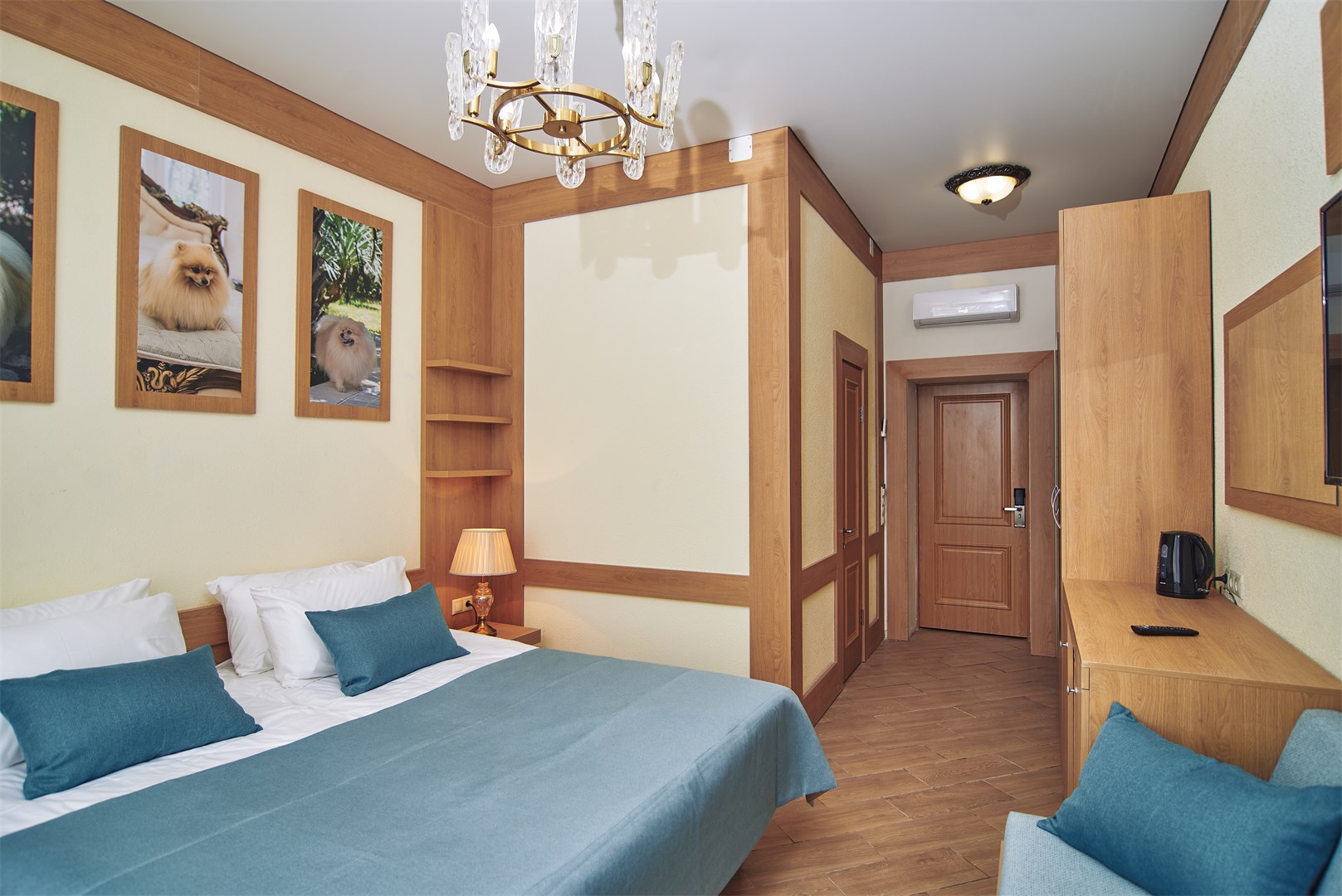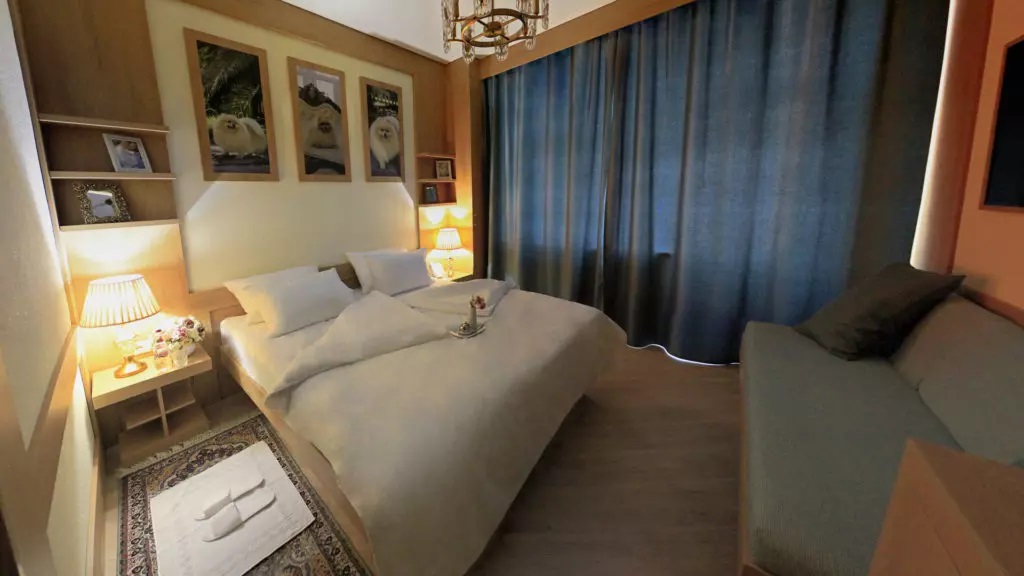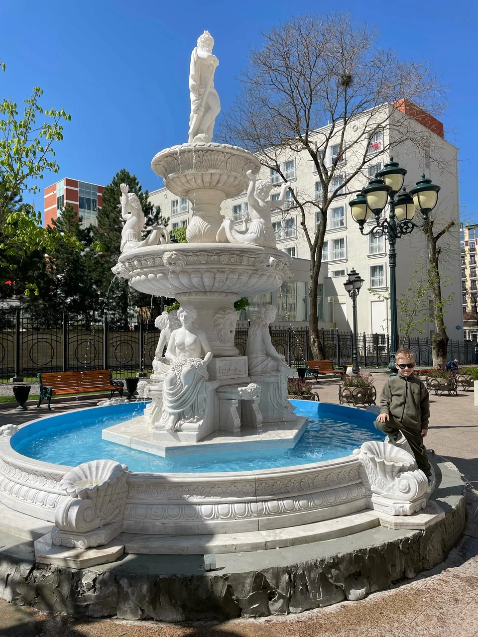 Для детей в бассейне выделена безопасная детская зона. Возможна установка детской кроватки в номер. Для самых маленьких постояльцев предусмотрен прокат колясок.