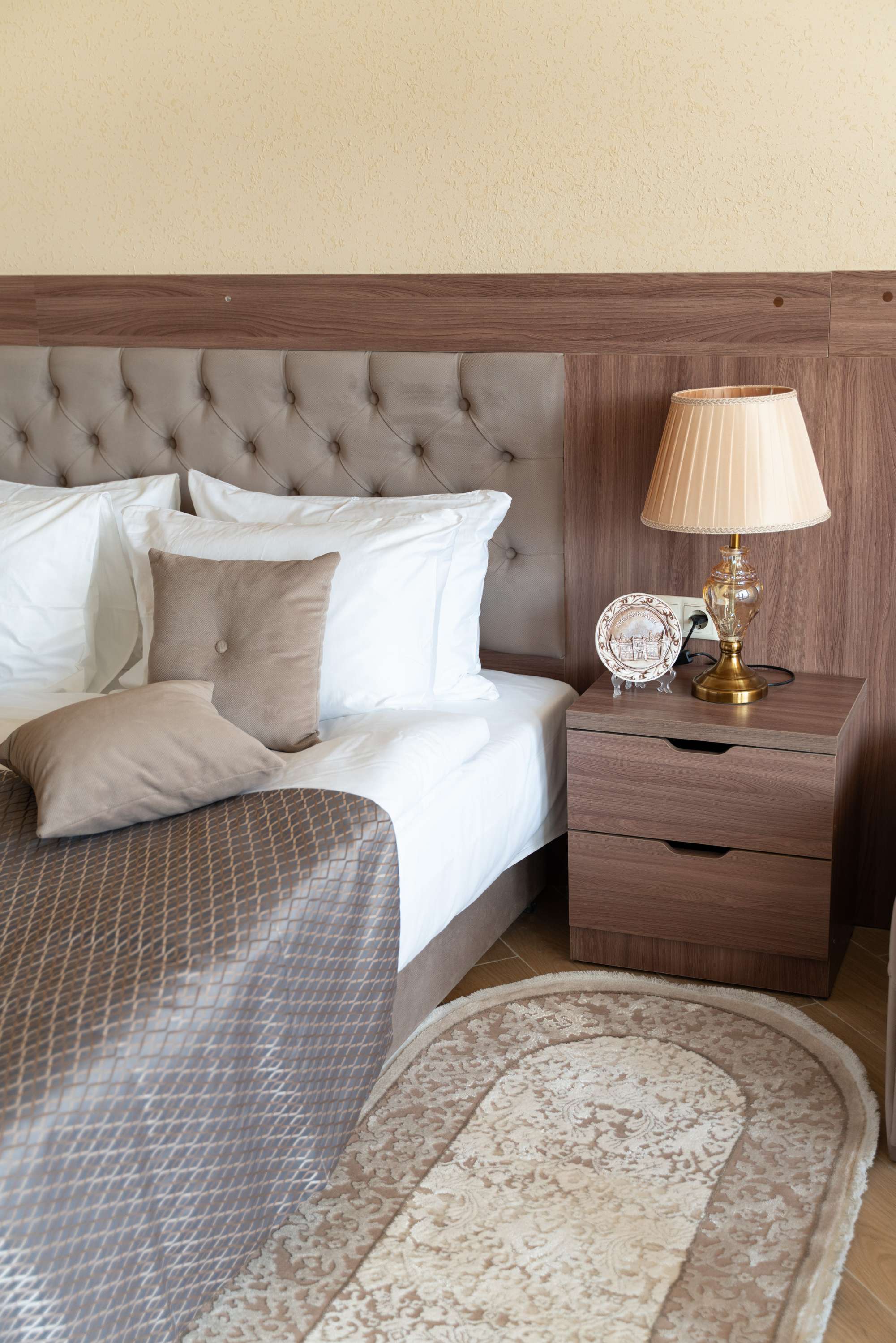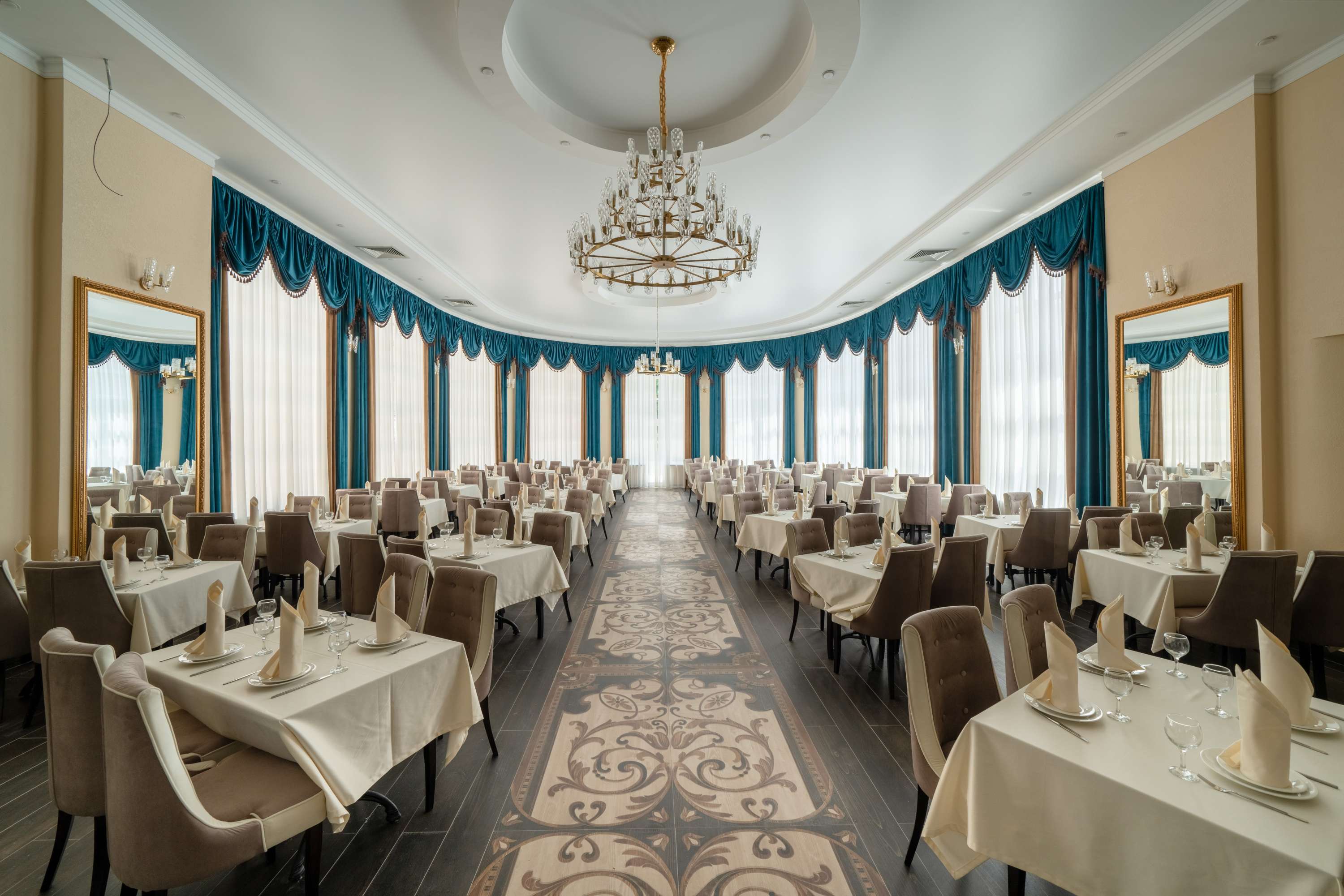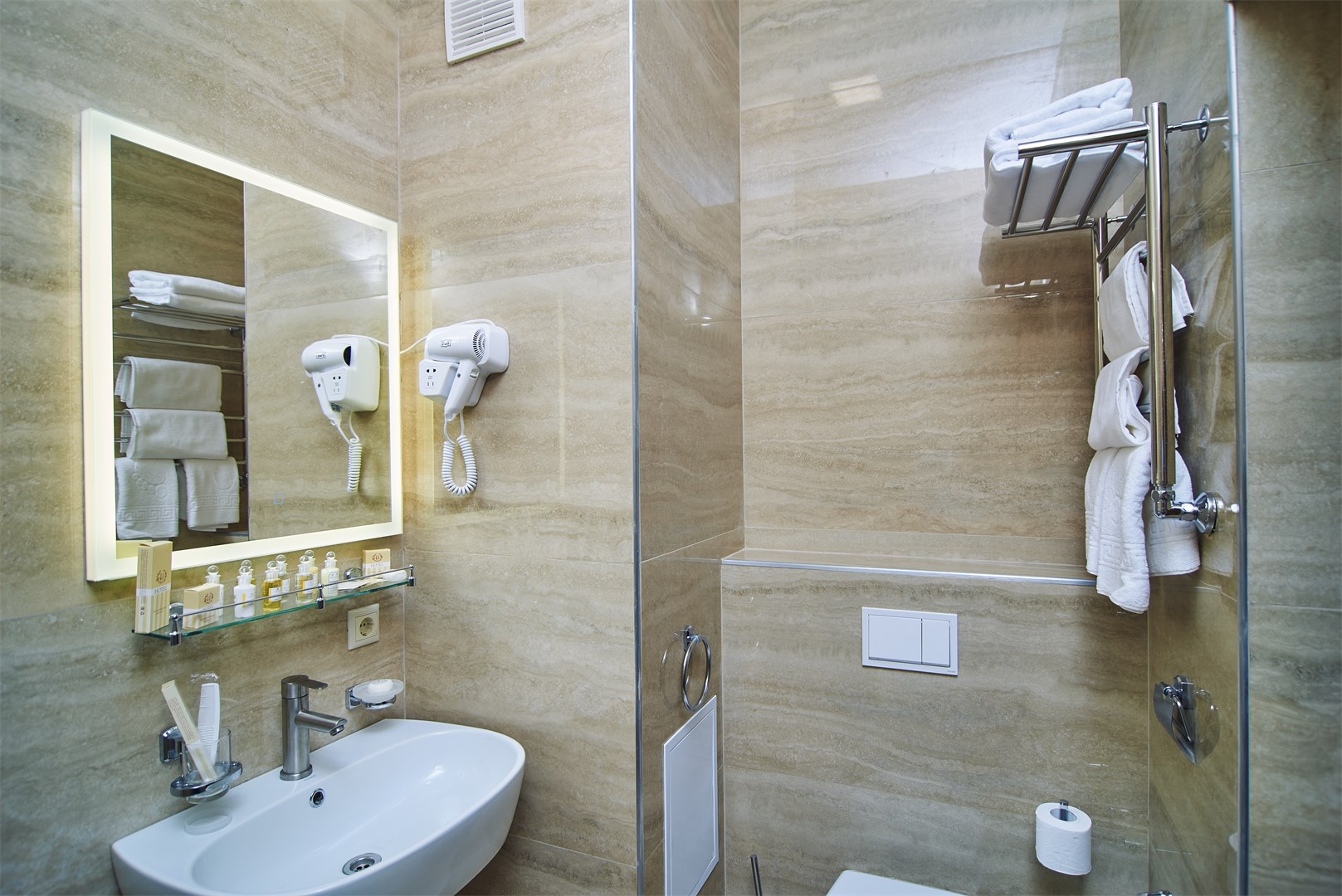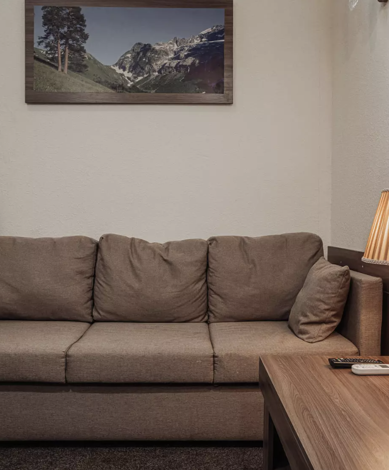 Санаторий расположился в 5-этажном здании, являющимся архитектурным и историческим памятником города. Номера выполнены в современном лаконичном стиле. В комнатах установлена удобная мягкая мебель, есть места для хранения одежды, большой телевизор с плоским экраном, кондиционер, холодильник. Санузел индивидуальный для каждого номера, оснащен душевой. Гостям предоставляются тапочки, халаты, полотенца, туалетно-косметические принадлежности, фен. Питание в столовой санатория организовано по разным системам, в зависимости от заболевания и назначенной диеты отдыхающего.